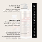 Keratin helps reinforce the hair's structure, making it stronger and less prone to breakage. Keratin helps reinforce the structural integrity of hair by binding to the hair shaft and improves hair strength and quality. It can help strengthen and repair damaged hair, reduce frizz, and improve hair elasticity and manageability.