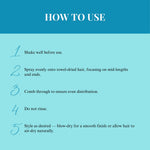 2. Spray onto towel-dried hair, focusing on mid-lengths to ends.