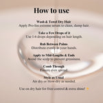 Rub 2-3 drops of serum into palms. Apply throughout damp or dry hair to smooth, protect, hydrate, and seal split ends.